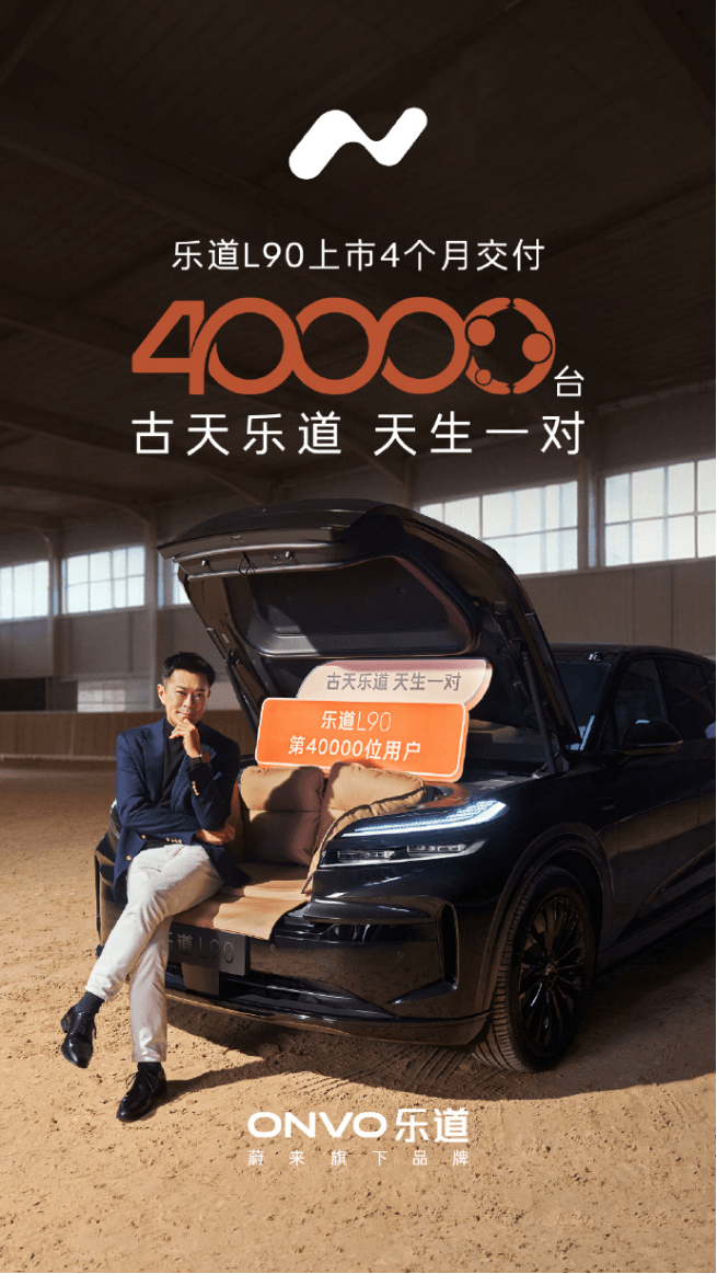 乐道汽车宣布旗下纯电大型SUV乐道L90上市4个月累计交付量达到4万台,创下同类车型最快交付速度纪录。乐道L90第40,000台车主为知名艺人古天乐,他同时也是乐道L90黑骑士特别版的首位车主。乐道L90黑骑士特别版于11月21日广州车展上市,整车购买价30.68万元,电池租用方式购买价22.08万元,限量发售999台。特别版车型标配四驱动力、二排右侧零重力座椅、电动踏板、曜黑全车饰件及轮圈等配置。