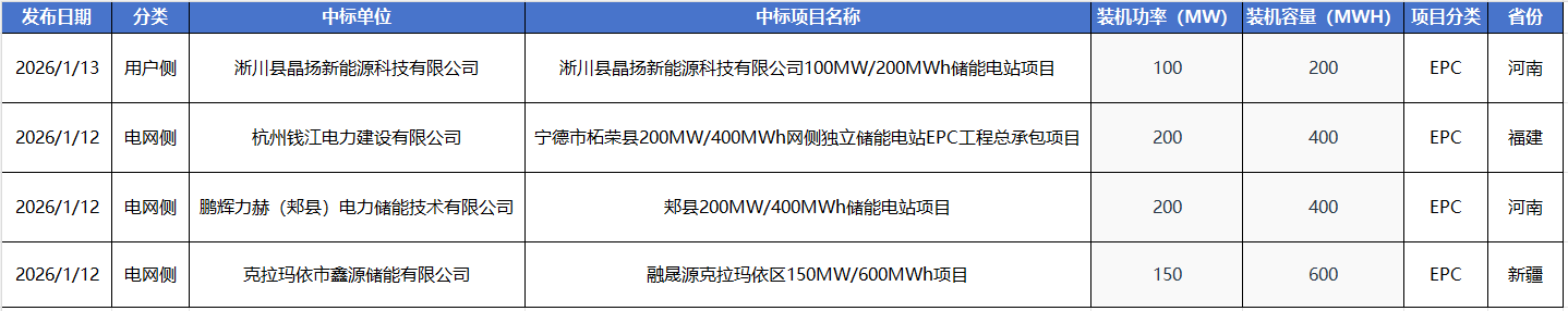 1月12日,曲靖市罗平县锂离子电池储能示范项目一标段(EPC)发布招标公告,该项目位于云南省曲靖市罗平县,项目资金为自筹资金96000万元(约合1.6元/Wh),招标人为罗平纳极新能源科技有限公司。