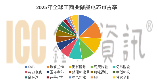 2025年工商业侧储能电池出货61GWh,同比增长103%,工商业储能电池市场已经形成五巨头的市场竞争格局。