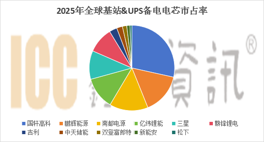 由于2025年5G基站建设进度放缓,加上锂电的渗透率没有得到进一步的提升。基站备电&数据中心UPS领域已经形成一超多强的市场竞争格局,国轩高科通过绑定华为,每年有较稳定的出货量级,市占率达28%以上,鹏辉、南都、亿纬、三星市占率均超10%以上。