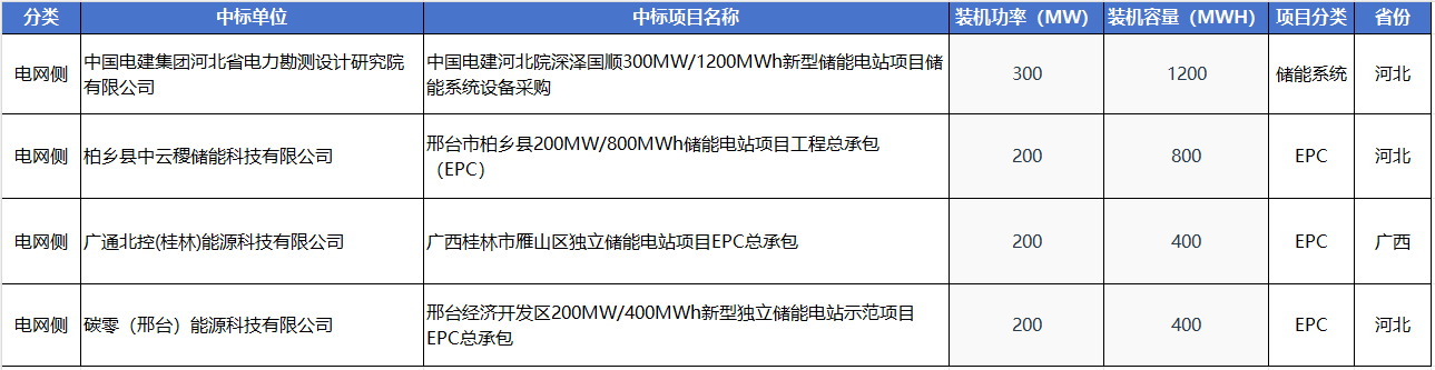 储能招投标市场