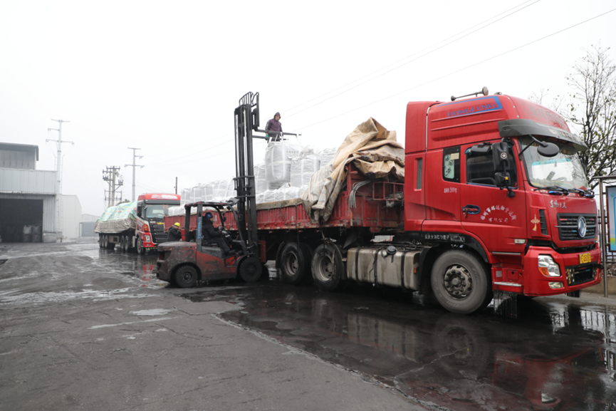 货车正在装卸原料