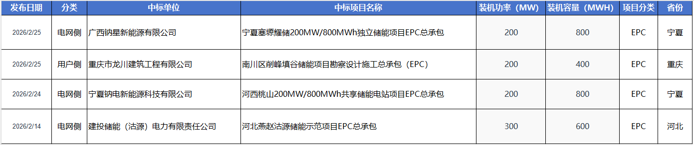 2月13日,中建德成(河南)实业发展有限公司在丹麦、西班牙的1116.5MW/2427.72MWh储能系统采购中标结果公示,中标企业依次为中车株洲所、远景能源、阳光电源、鹏辉能源,四家企业的报价为0.836~1.043元/Wh。