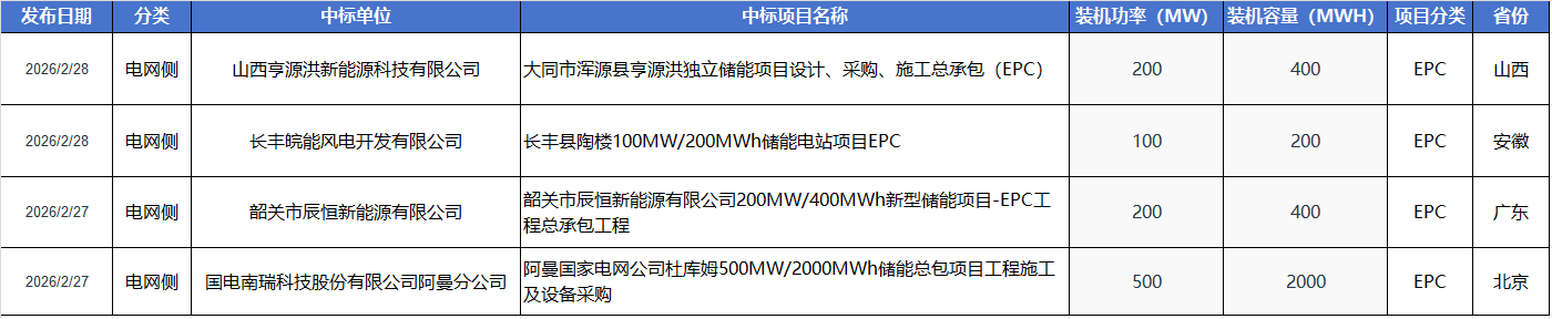 2月27日,鹏辉力赫襄垣县400MW/800MWh独立储能项目总承包(EPC)招标公告发布。