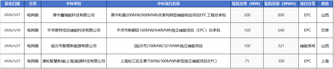 鑫椤资讯本周部分储能项目并网/投运情况如下: