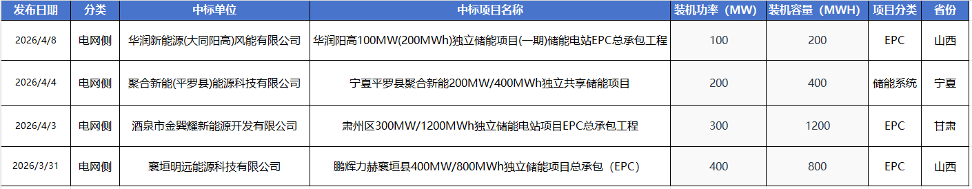 4月8日,风禾储能科技(柯坪)有限责任公司发布东方旭能柯坪20万千瓦/80万千瓦时独立式储能项目及二期工程EPC招标公告。公开资料显示,两期项目同步建设,总规模达400MW/1600MWh,均采用磷酸铁锂电池,并配套新建1座220kV升压站及生产生活设施。项目位于新疆阿克苏地区,招标范围涵盖设计、采购、施工、并网、验收及保修等全过程,接受联合体投标。