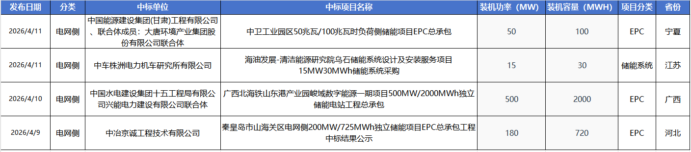200.1GWh!2026年Q1中国储能企业订单再创历史新高